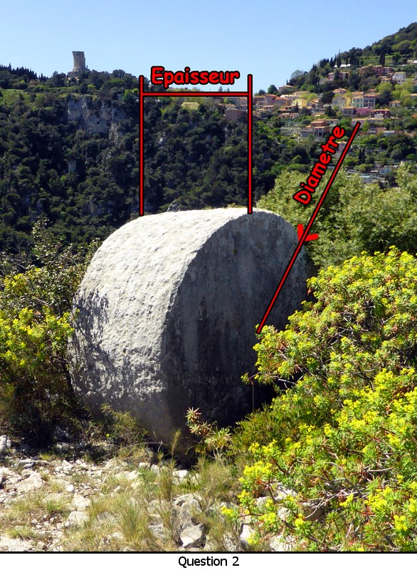 2 – Au waypoint question 2 . Munissez vous d'un mètre et donnez les dimensions de l'element de colonne vertical (Voir photo question 2). Deduisez en son poids ( pi x Rayon2 x Epaisseur x Densité )