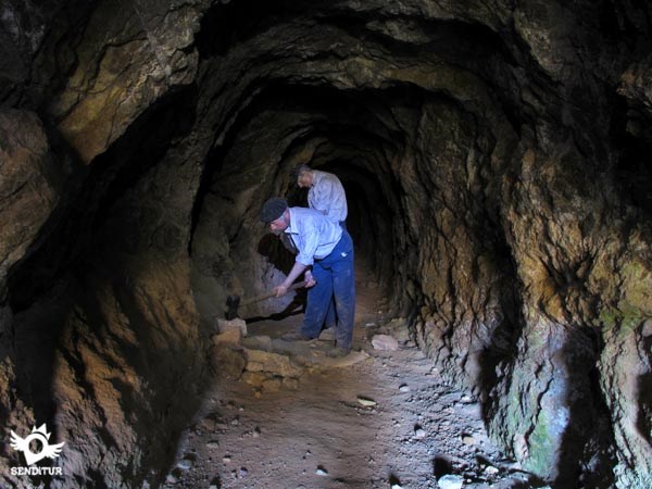 Anteriormente, hacia el año 1.785, se hicieron unas primeras estibaciones que no dieron los resultados esperados, siendo en el año 1.945 cuando, tras unas nuevas pruebas, se determinó comenzar con las explotaciones. Desde esta zona principal podemos continuar adentrándonos en el barranco, que poco a poco va estrechándose, y dejando a nuestra izquierda el sendero que asciende por la montaña y que corresponde con la ruta de los pueblos, descendemos hacia el túnel donde se encuentra la Fuente de los Túneles de los Moros, situada en otra de las zonas de explotación mineras.
