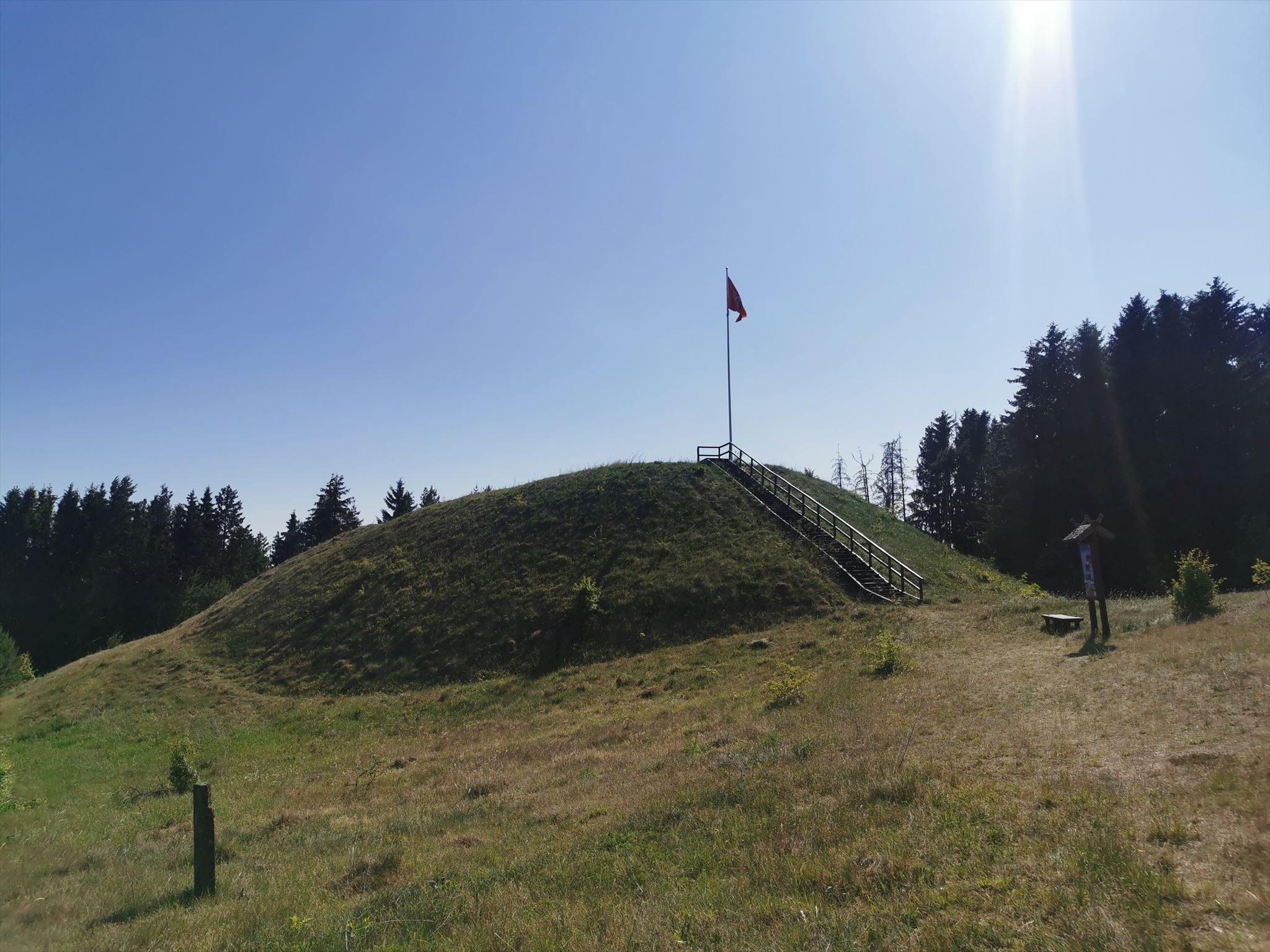 Piliakalnis yra 0,1km į šiaurę nuo Vilkokšnio ežero šiaurinio kranto. Šlaitai 5-8m aukščio. Viršūnės aikštelė 20m ilgio Š-P kryptimi,10-12m pločio. Ja žiedu juosia pylimas: pietų pusėje 1,5m, šiaurės pusėje 2,5-3,0m Aikštelėje yra 0,5m storio kultūrinis sluoksnis. Piliakalnio šiaurinėje papėdėje yra senovės gyvenvietės liekanų. 100m. į vakarus nuo piliakalnio - maža pusrutulio pavidalo nuolaidžiais šlaitais kalvelė. Vietos gyventojai ją vadina piliakalniuku.