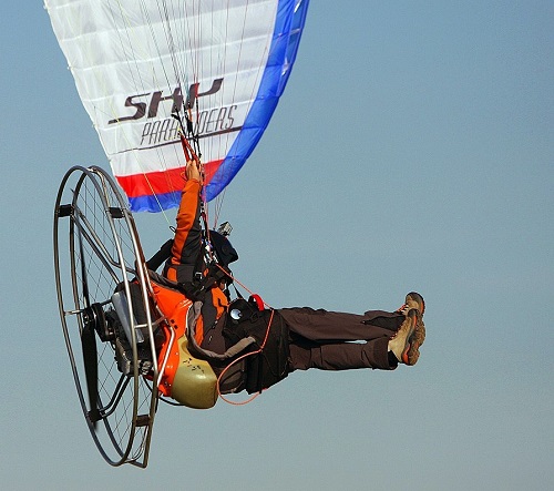 Při motorovém paraglidingu se na rozdíl od běžného paraglidingu používá k získaní výšky, pohonnou jednotkou a tou je většinou motor s vrtulí.