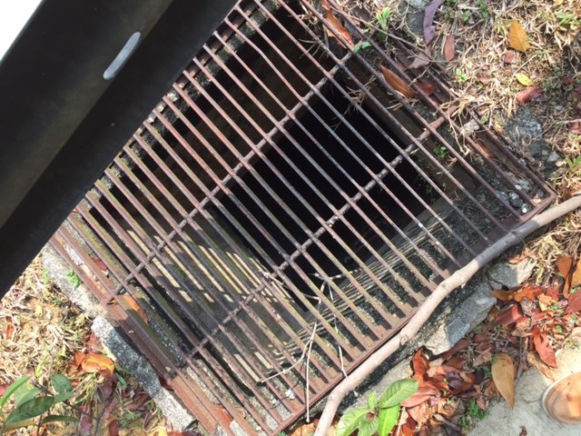 At GZ, you will be able to stand on top of this grate and see the cache hanging inside. Now, how can you get your hands on it?? CLUE: you're going to have to walk around, and down, and run the gauntlet of red ants and black ants, bow and prostrate to gain entry into the 'Tunnel of Death', and pray that you do not disturb any of the guardian wasps, before climbing to the light to claim this cache.