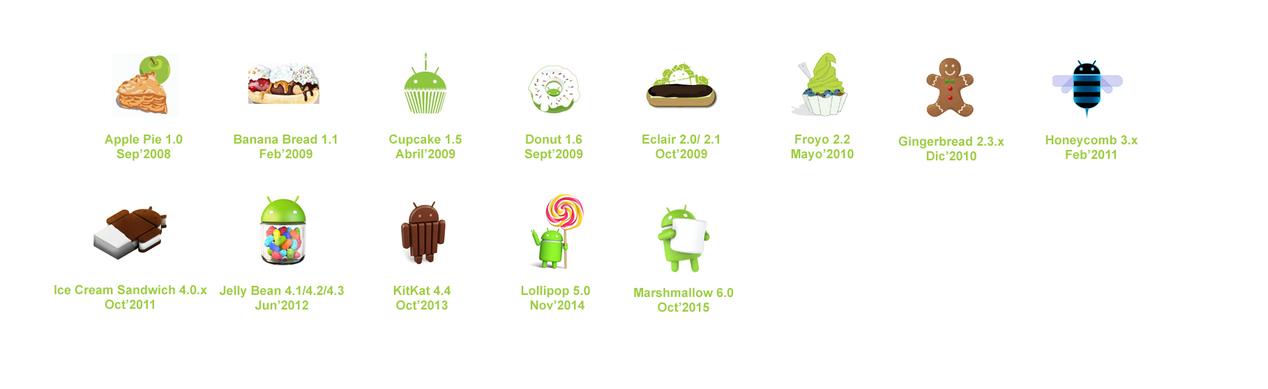 Kompletní historii systému Android včetně technických parametrů a popisů vlastností jednotlivých verzí jistě najdete v mnoha článcích na internetu. Na závěr listingu tedy jistě postačí jen jejich přehled v grafické podobě.