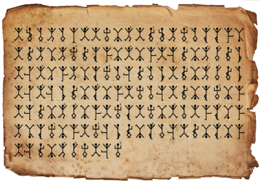 –Desde luego, se trata de un documento muy curioso –dijo Holmes–. A primera vista, podría pensarse que no es más que un juego de niños. Son una serie de monigotes ridículos que parecen estar bailando. ¿Por qué le atribuye usted tanta importancia a una cosa tan grotesca?