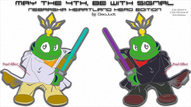 To help celebrate this World Wide Multi Event, a unique Northeast Nebraska "Heartland Hero" Edition of the Jedi Signal geocoin has been minted! This coin is VERY limited with only 35 having been produced. They will be available on a first come, first served basis.