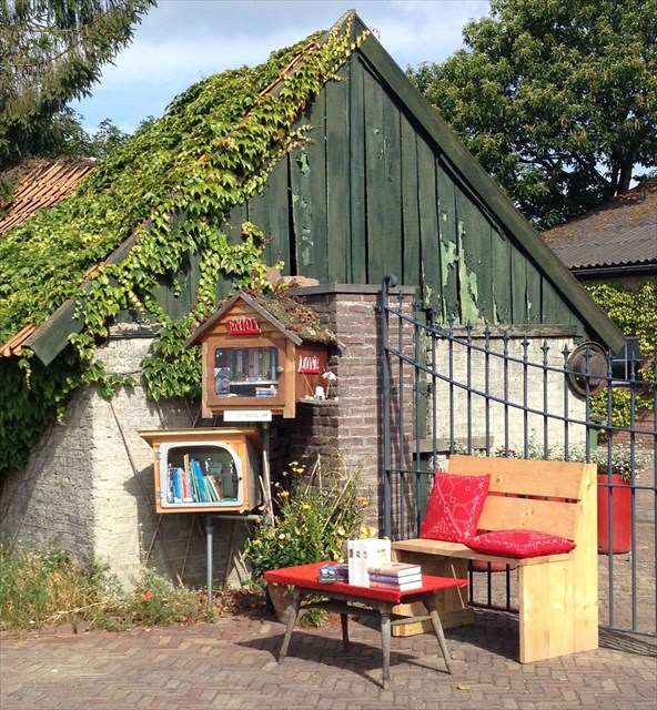 In de zomer van 2011 bouwde Todd Bol het eerste minibiebje in Amerika. Het doel is om lezen te promoten en toegankelijk te maken voor iedereen. Neem en boek - geef een boek. Lenen van de boeken is gratis. Het huisje; staat hier vanaf moederdag 2014.