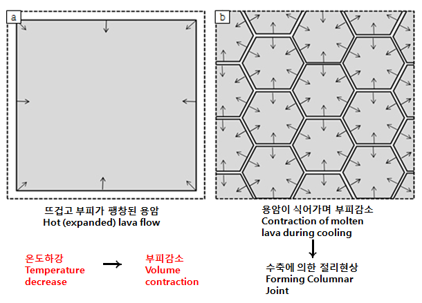 1) 바다물과 만나는 부분은 절리가 뚜렷하지만 클링커층으로 덮여있는 윗부분에는 절리가 희미하게 없어진다. 그 이유는 클링커층에 덮인 용암이 공기와의 접촉이 차단되어 천천히 식기 때문이다. (진실/거짓)