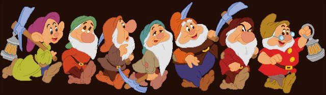 Más tarde llegaron los dueños de la casa que eran siete enanitos que benian de trabajar 2 eran Carpinteros , 1 Cantero ,2 Herreros , 1 Desatascador de tuberías y 1 Minero . Al encontrar a Blancanieves, ésta les explicó su historia, y los enanitos decidieron que se quedase a vivir con ellos.