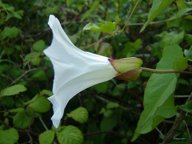 This flower must have the most nicknames of any british plant, other names include - bearbind, hedge convolvulus, hooded bindweed, old man's nightcap, wild morning glory, bride's gown, heavens trumpets, white witches hat, belle of the ball.