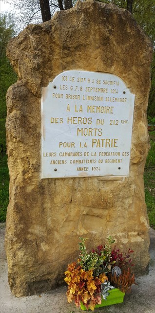 Dans la forêt autour de vous sont tombés des milliers de jeunes gens venus de toute la France défendre la patrie.Ici même, des soldats venant des régiments d'infanterie de Tarbes, du Puy, de Saintes, de Partenay, de Toul, de Poitiers, ont, avec leurs poitrines, arrêté en ce lieu même la ruée allemande.