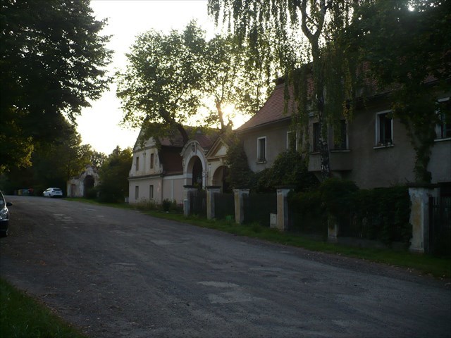 2.stage - Dřevčická tvrz (N 50° 10.112 E 014° 37.837): Tvrz vznikla ve 14. století, původně biskupská, založená na ostrohu, chráněná vodním opevněním. Po husitských válkách zpustla, kolem roku 1630 byla upravena renesančně, v 18. století byla přestavěna v barokní sýpku, v jejímž suterénu jsou zbytky paláce. Pozůstatky tvrze (ohradní zeď a někdejší obytná budova) stojí na severním okraji obce nad rybníkem a dosud prozrazují pevnostní charakter původní stavby. Více se o ní můžete dozvědět v listingu tradičky (GC3MN4D). Vás bude zajímat jednociferné číslo na červené tabulce napravo od vstupní brány = B
