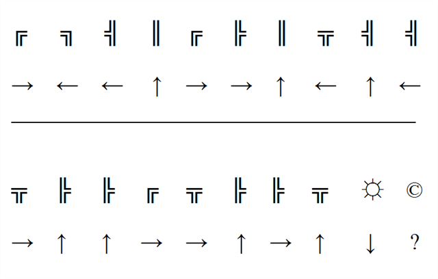 Na ceste ku keškám nás väčšinou naviguje šípka v GPS-ku. K nájdeniu tejto kešky, budete okrem GPS potrebovať aj itinerár, ktorý nájdete v ďalšej časti listingu. Úvodné súradnice Vás dovedú na parkovisko pred hypermarketom „Krajina nákupov“, na ktorom absolvujete aj celú trasu ku keške. Vašou úlohou bude najprv dostaviť sa na štartovaciu čiaru (waipoint 01). Potom už budete pokračovať podľa veľmi zjednodušeného itineráru, ktorý sme vám pripravili a ktorý Vás dovedie až na finálne súradnice. Nakoľko nie ste na pretekoch, dodržiavajte pravidlá cestnej premávky, aby ste šťastne došli až ku keške. V itinerári je vždy v hornom riadku zobrazený tvar križovatiek alebo úsekov, ktorými postupne pôjdete a v spodnom riadku je vždy šípkou vyznačený smer, ktorým je potrebné príslušný úsek prejsť. Ak sa dostanete k predposlednému znaku v itinerári, ste na finálnych súradniciach. Potom už iba stačí rozlúštiť posledný znak v itinerári a keška je Vaša. A tu je váš itinerár: