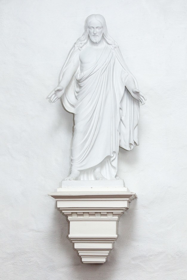 Kopi i gips af Bertel Thorvaldsens Kristusfigur i Københavns domkirke. Skibets nordvæg.