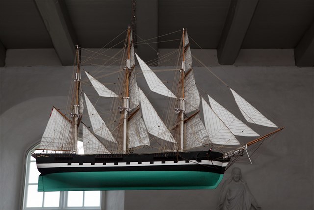 Da kirken blev restaureret i 1974-75 fandt man dette skib på loftet. I skroget stod at læse: »Dette skib er lavet som husflid og skænket til Ovtrup sognekrike af den gamle 77-årige veteran Johan Frederik Berg den 17. august anno 1905. Til minde om min kære hustru Edel Johanne, død i Ovtrup den 15. maj 1905, 72 år gammel.«