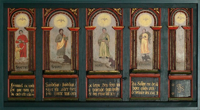 Panelerne, der er fra renæssancen og forestiller de fire evangelister, stammer muligvis fra en prædikestol. Der er samlet i en ny ramme og ophængt på skibets vestvæg.