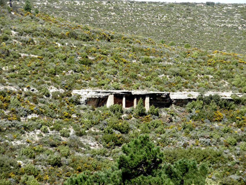Se encuentra al Sureste de la población de Ayora en los terrenos de Casa de Pí, en unos escarpes del Barranco del Sordo.