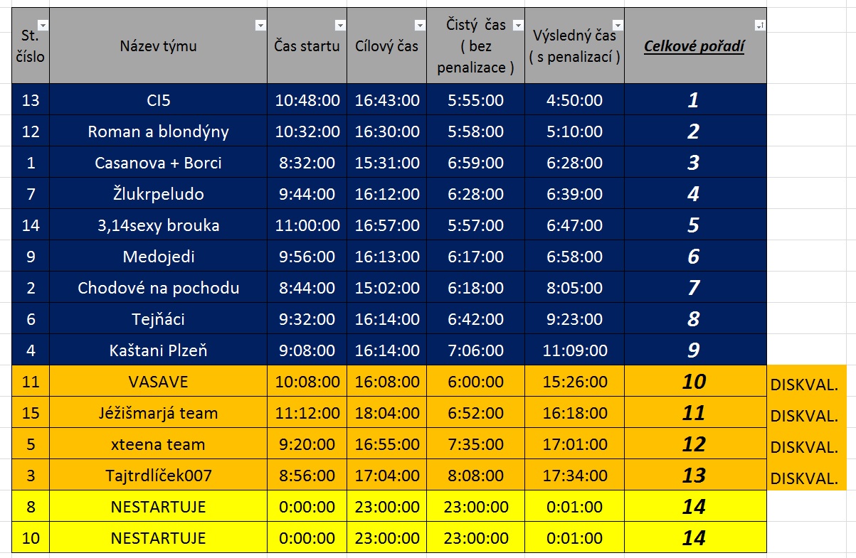 V minulém ročníku se nám osvědčil navrhnutý způsob startování, tzn. startovní číslo každému týmu bude přiřazeno na základě pořadí přihlašování. Aby se eliminovalo čekání na startu, bude každému týmu přiřazen přesný čas startu. Čekání v cíli vám letos budou zpříjemňovat různé zábavné hry, které již nebudou mít vliv na výsledné pořadí v závodě. For FUN :)