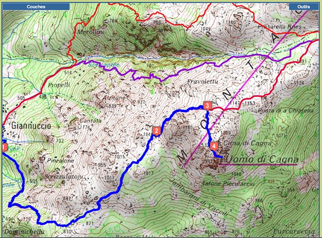 Le départ du sentier se situe dans un tout petit village pittoresque ( Giannuccio ) sur une route fort bien carrossable qui prend fin dans ce dernier.