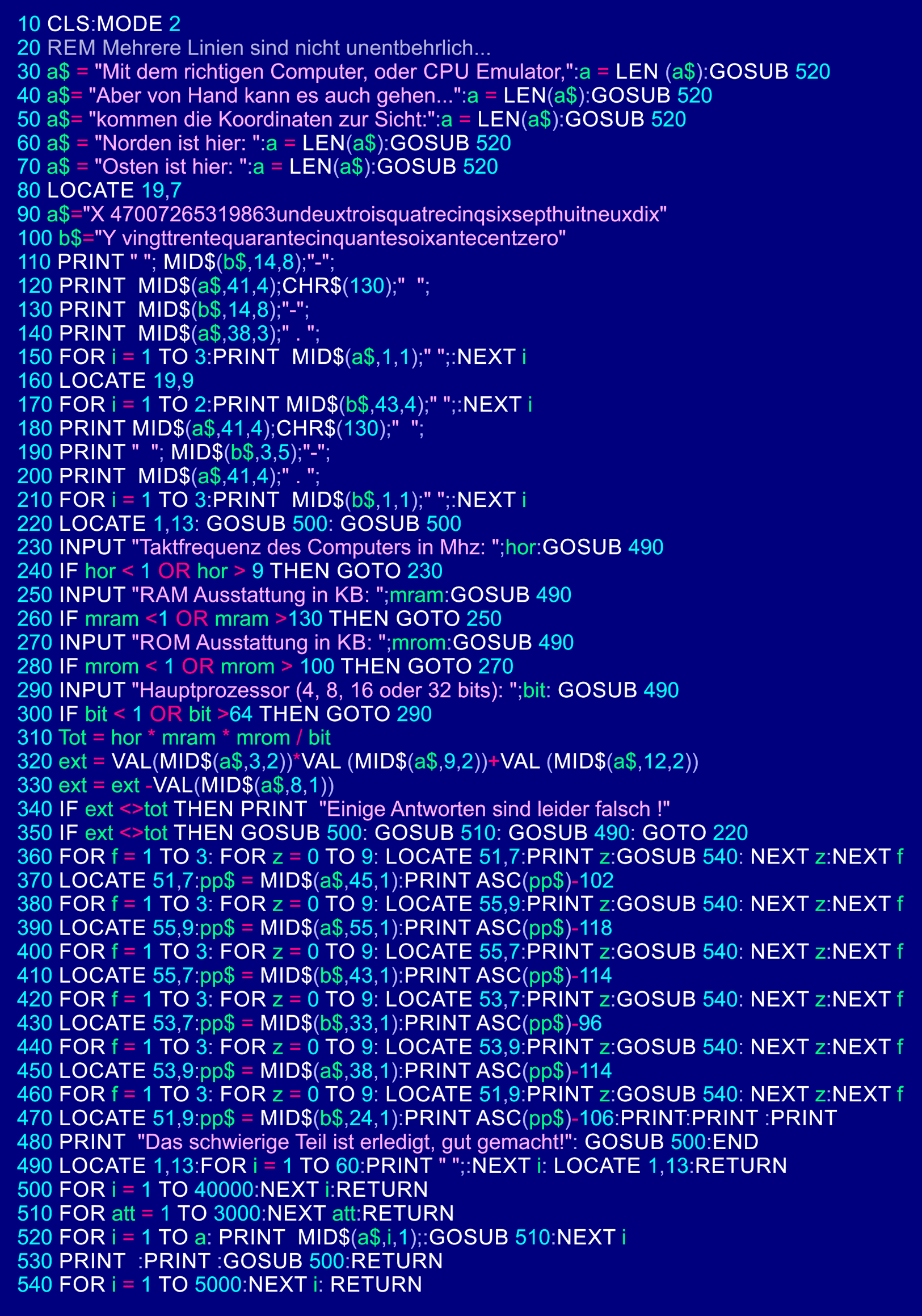 Die deutschen Computerprogrammzeilen sind hier