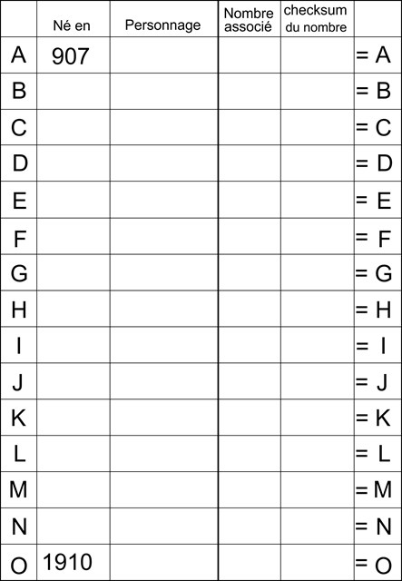 Le premier personnage sera le A, le second sera le B, ainsi de suite jusqu'à O