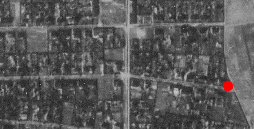 This aerial photo shows a fragment of a pre-war housing estate, realised after a compact project, in the form of quasi-town full of green spaces, keeping all the necessary reserves for the future investments. Big parts of the estate exist until today, however it has been split by many new objects. The general layout is preserved until the present day. The red dot shows the hiding place of the cache, which is an integral part of the estate.