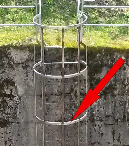 Look to south! E = Count the horizontal hoops of the safty cage of the ladder