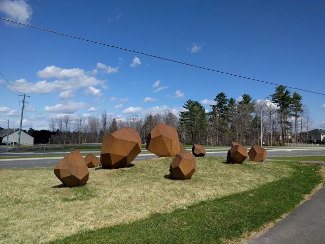 It’s a traditional cache placed somewhere around a ‘work of art’ that sits near where Trim Road used to be before the Trim Road Realignment Project.