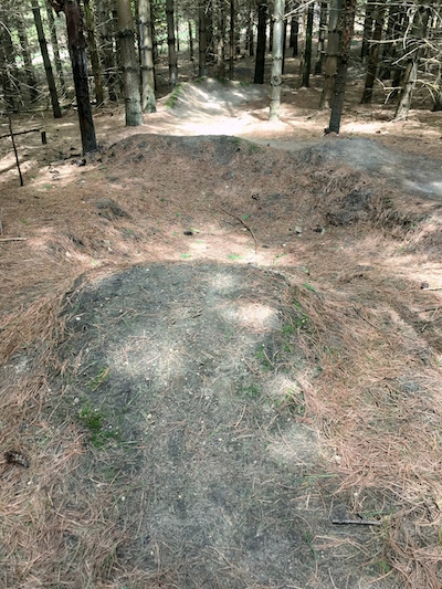In this part of the white pine forest you will find a secret, ever evolving BMX trail, made by local kids.