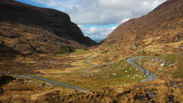 The Gap of Dunloe, hewn two million years ago by giant, slow moving ice is probably the finest example of a glaciated valley in western Europe.It is a narrow pass in the the mountains of the McGuillycuddy Reeks mainly between the Purple Mountain on the left and the Bull Mountain. Here the visitor travels along 10kms of winding pathway alongside 5 "Loughs"