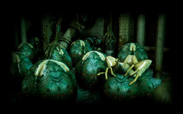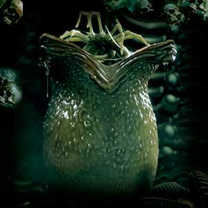 Vajíčko je osmdesát centimetrů vysoké a má v průměru 40 centimetrů. Povrch je z vlhké, slizovité a průhledné tkáně. Na vrchu vajíčka jsou čtyři chlopně, které se otevírají, aby mohl ven proniknout facehugger. Ten zůstává uvnitř skrytý vyživován okolní tkání. Takto může zůstat i několik set let. Vajíčko je citlivé na podněty a reaguje na zvuk, vibrace, pohyb a teplotu okolo. Poté se otevřou horní chlopně a facehugger velkou rychlostí opouští vajíčko.