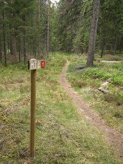 Pumpa din mountainbike - eller knyt vandringskängorna - och följ den 12 km långa Röd led #1 över Mullåsen. När snön ligger tjock dras skidspår delvis längs leden. OBS, det är INTE tillåtet att gå eller cykla i skidspåret! Leden är välskyltad genom trollsk skog. Mestadels lättcyklad MTB-bana, bitvis krävande med stadscykel eller för den som är ovan att cykla i skogen.