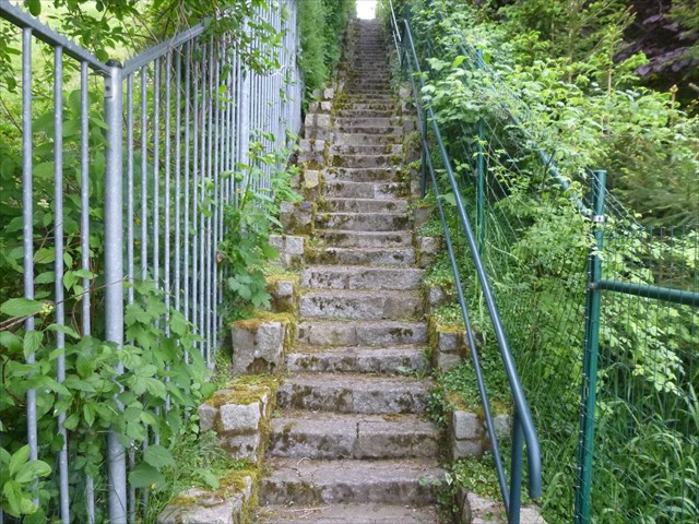 Dieser Cache zeigt Euch einen den meisten unbekannten Zugang vom Ortsrand des Leunaer Stadtteiles Göhlitzsch hinab zur Saale. Hierbei wird auf einem Weg von ca. 40m ein Höhenunterschied von ca. 10m überwunden, was einer Steigung bzw. einem Gefälle von 14° oder 25% entspricht! Zusätzlich variieren die Stufenbreite und -höhe teilweise erheblich, also gut aufpassen, wo man hintritt! In der (jetzt noch fernen) kalten Jahreszeit ist auch der Hinweis "Kein Winterdienst" durchaus ernst zu nehmen. Bitte beachtet, dass sich dieser Cache in einem Wohngebiet befindet und verhaltet Euch dementsprechend.