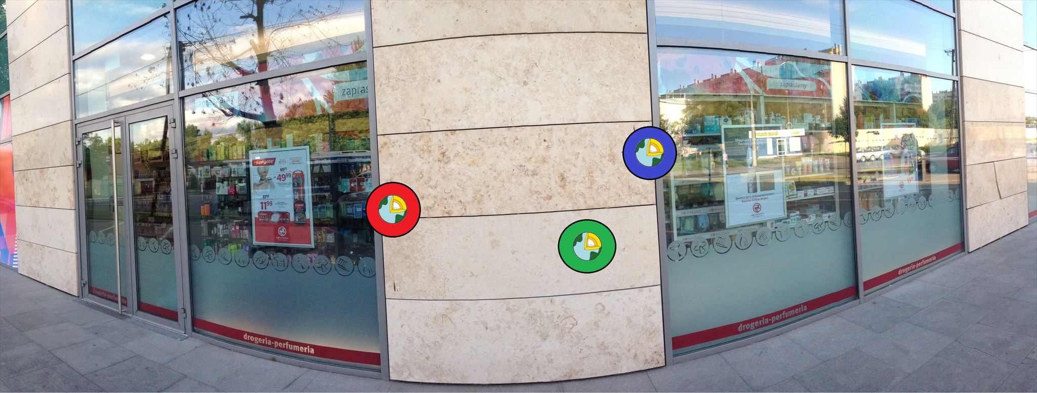 EARTHCACHE zaprowadzi Cię do ściany biurowca zbudowanej z wapienia. Dla ułatwienia lokalizacji poszczególnych skamieniałości spójrz na zdjęcie poniżej pytań. Kolory w pytaniach i na zdjęciu powinny Ci ułatwić zadanie.