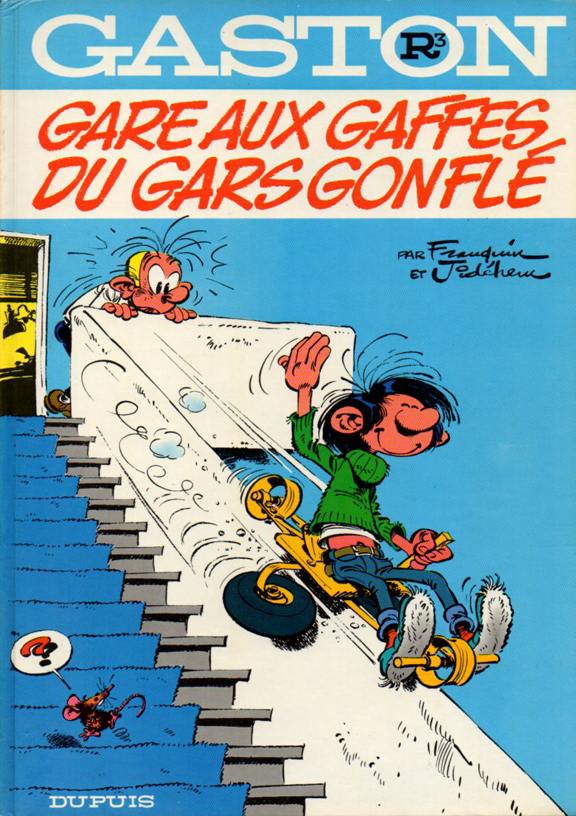 Voici une série de caches mystères ayant comme sujet les bandes dessinés de Gaston Lagaffe. La majorité des énigmes de cette série ont été inspirées de la première de couverture des livres 1 à 14 de cette série de BD. Toutefois, en recopiant les images, j'ai omis certains éléments. À vous de trouver lesquels !