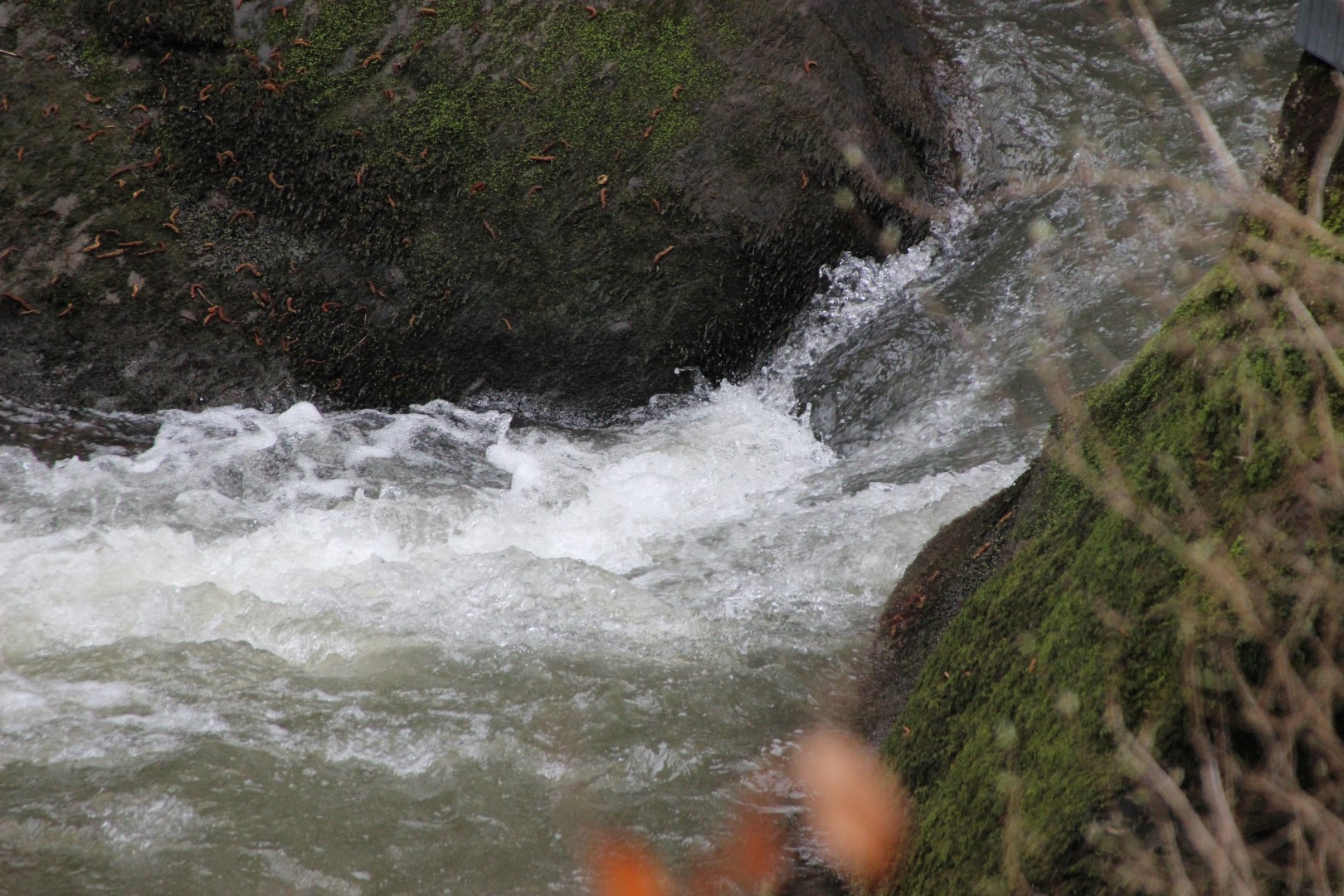 Die meisten Strudeltöpfe könnt ihr von der Brücke aus mittig und rechts, gesehen gegen die Flussrischtung , finden.
