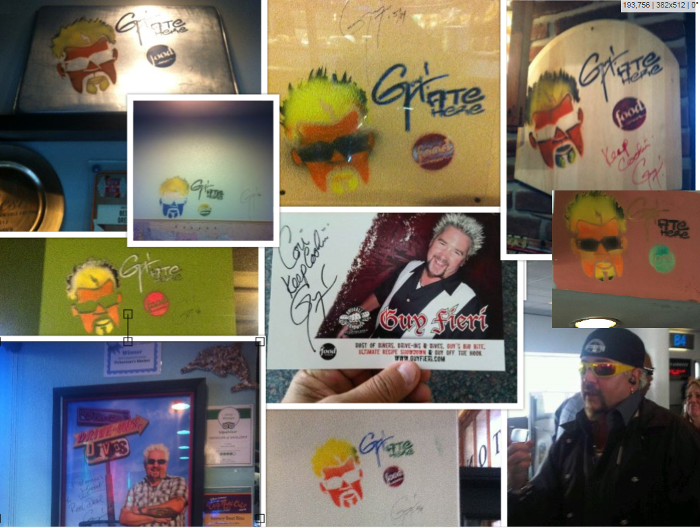 About five or six years ago, Alan (one of the "A"'s in CACCBAG) was on a plane and found himself sitting next to Guy Fieri. He had never met him or knew of the show. He was a nice "guy" (pun intended) and I Alan even grabbed an autograph for Cori (one of the "C"'s in CACCBAG). A few years later we started watching the show. Turns out he started his empire near where Alan grew up.