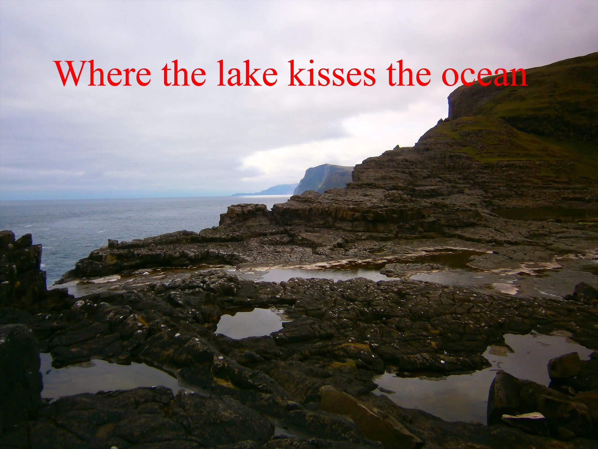 Close by the cache you will see the Bøsdalafossur waterfall, which carries the lake into the ocean after flowing over an area of basalt rock at the waters southern point.