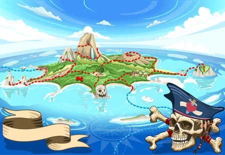 Vous venez de mouiller sur les bords de l'Île-au-crâne-percé. C'est ici que le terrible pirate Sourcils-Tressés a caché le plus grand trésor de tous les temps.