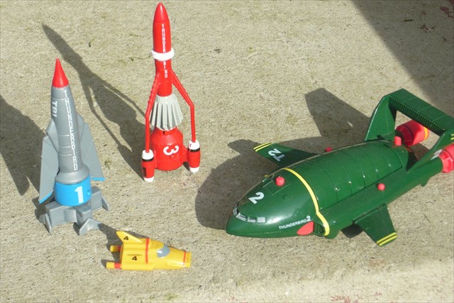 S 36° ( John ) ( Gordon ) . ( Scott ) ( John + Alan ) ( Alan ) E 174° ( Alan ) ( John + Gordon ) . ( Virgil + John ) ( Scott ) ( Brains )