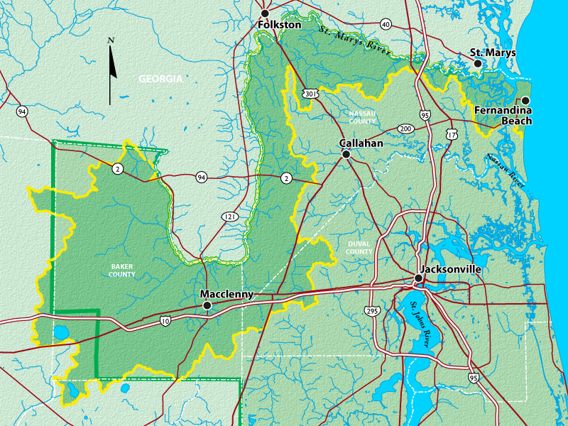 The St. Marys River is one of the best-preserved and most unique blackwater river systems in America. The 125 mile long winding river forms the northeastern border between Florida and Georgia. The river’s headwaters originate within the Okefenokee Swamp and drain into the Cumberland Island National Seashore in the Atlantic Ocean. The waters of the St. Marys River have long been known for its outstanding quality.
