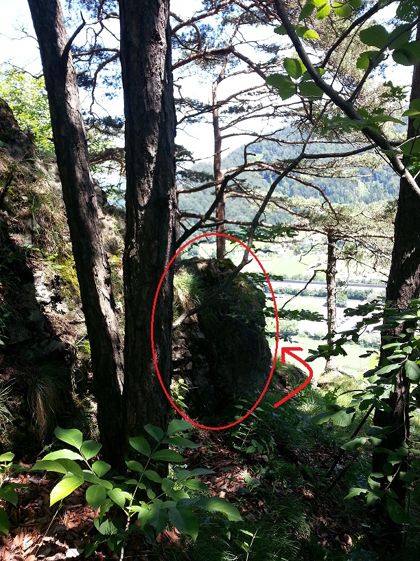 Start at the parking coordinates and follow the path via Stage 1 up to the antenna at the top of the Gsollerkogel (Stage 2). From there you need to search your own way to Stage 3 because there is no path leading to the former location of the castle. Consider that the descent from the Gsollerkogel to Stage 3 is about 150 meters. Hiking shoes are strongly recommended. The cache can be found without the need to climb or to bring yourself into danger. Plan roughly 1.5 hours for the complete cache. You can perfectly combine this Multi with the Tradi "Gsoller". If you are hungry or thirsty you can visit the forest tavern Bäckerseppl.