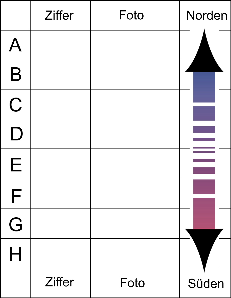 Ihr müsst es herausfinden und diese Orte von Norden bis Süden sortieren.