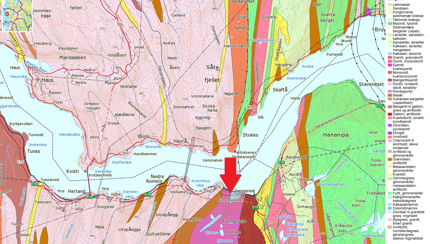 Map of the local geology (NGU) with GZ indicated with red arrow