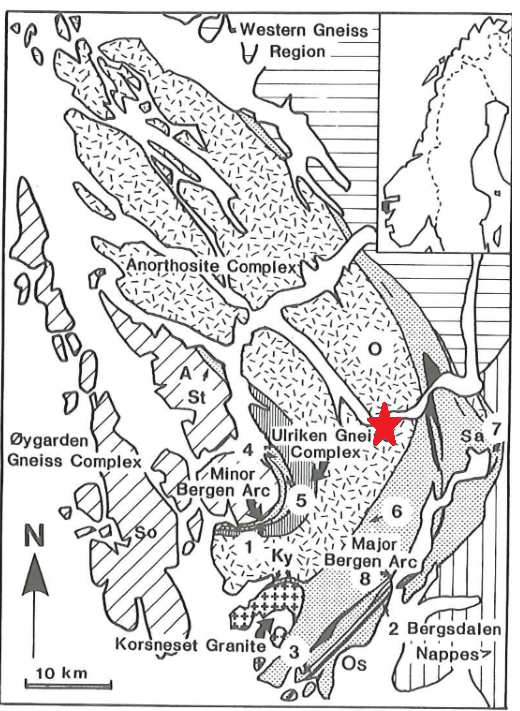 Haakan Fossen (1988) The Ulriken Gneiss Complex and the Rundemanen Formation: a basement-cover relationship in the Bergen Arc, West Norway. Nor. Geol.unders. Bull. 412 67-86.