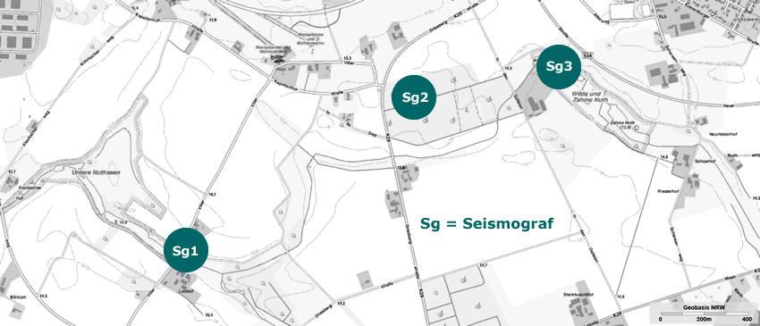 Ein Ereignis vom 8. September 2011 haben wir zum Anlass genommen, denn im Epizentrum der gelisteten Koordinaten ereignete sich am nördlichen Niederrhein bei Goch (an der Driesbergstraße) ein Erdbeben. Das Beben der Magnitude 4,4 fand um 21:03 Uhr (MESZ) in einer Tiefe von 6 km statt und war in großen Teilen von NRW, Belgien und den Niederlanden zu spüren. Die Erdstöße konnten sehr gut von den seimologischen Stationen der Ruhr-Universität Bochum gemessen werden. Die ersten Erdbebenwellen erreichten die Stationen in Bochum nach 12 Sekunden. Es wurden auch ca. 0,35 mm Bodenverschiebung bei einer Bodengeschwindigkeit von 0,79 mm/s gemessen. Berichte über nennenswerte Schäden liegen allerdings nicht vor.