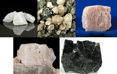 Variable proportions of the previously described oxides are found in magma. When it cools, these oxides combine and form crystals of complex chemical formulae. For example, orthoclase is the result of potassium oxide, alumina and silica combination. For the minerals found it granite, here are the chemical equations of formation: