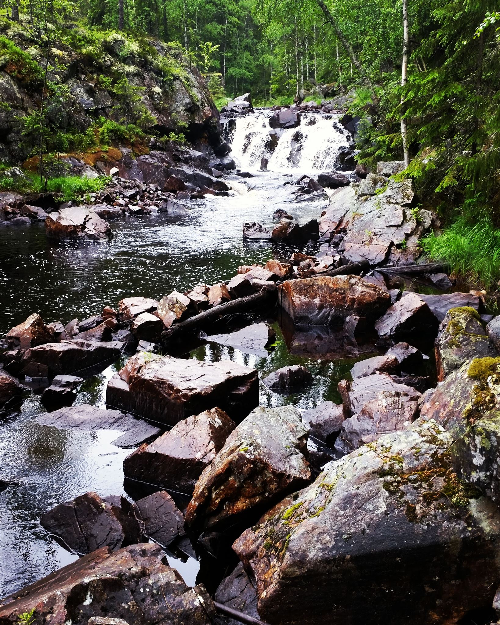 At Brattforsen the usually calm Nittälven runs through a dramatic area with rapids, surrounded by steep cliffs. Here you will find a beautiful little nature reserve and in the water the trout lures. A footpath of about 2-3 km passes through the reserve. Close to the cache there is a shelter and a fireplace, making this a perfect spot for a break or even to sleep outdoors.