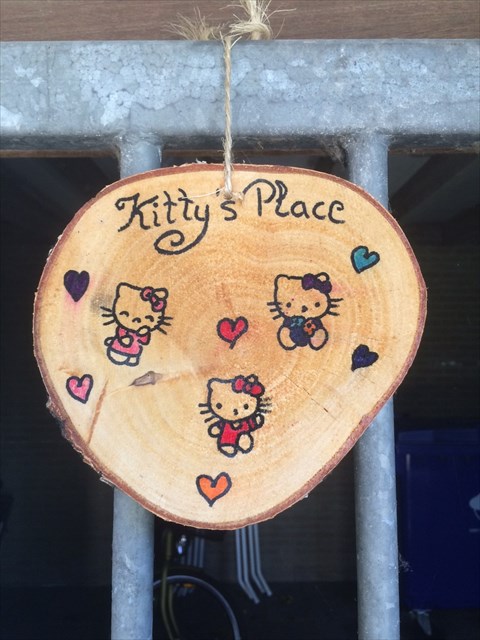 We beginnen bij het huis van Kitty. Kitty is de fietsenhokpoes. Zij was een bange zwerfkat tot zij werd geadopteerd door de dames van de bibliotheek in Roosendaal. Nu woont zij in het fietsenhok en noemt haar verzorgers liefkozend ‘blikopeners’.