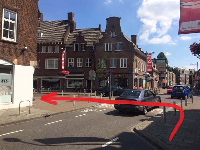 13. En bij de kruising loop ik dan weer linksaf. Het is hier vaak druk en soms wordt er ook hard gereden. Dus kijk heel goed uit bij het oversteken: