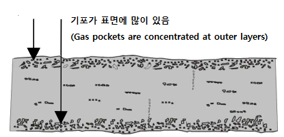 - 직탕폭포 근처에는 기포가 없는 매끈한 현무암들이 쉽게 발견됩니다. 이 현무암에는 왜 기포가 없을까요?