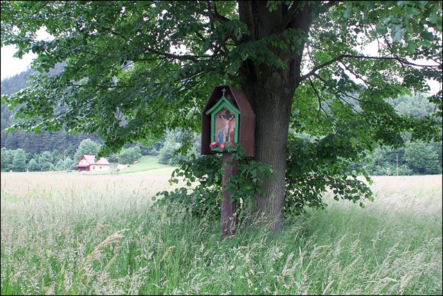 Kapliczka na palu pod lipą. W miejscu bardzo widokowym. Panoramy gór 360 stopni. Serdecznie zapraszam
